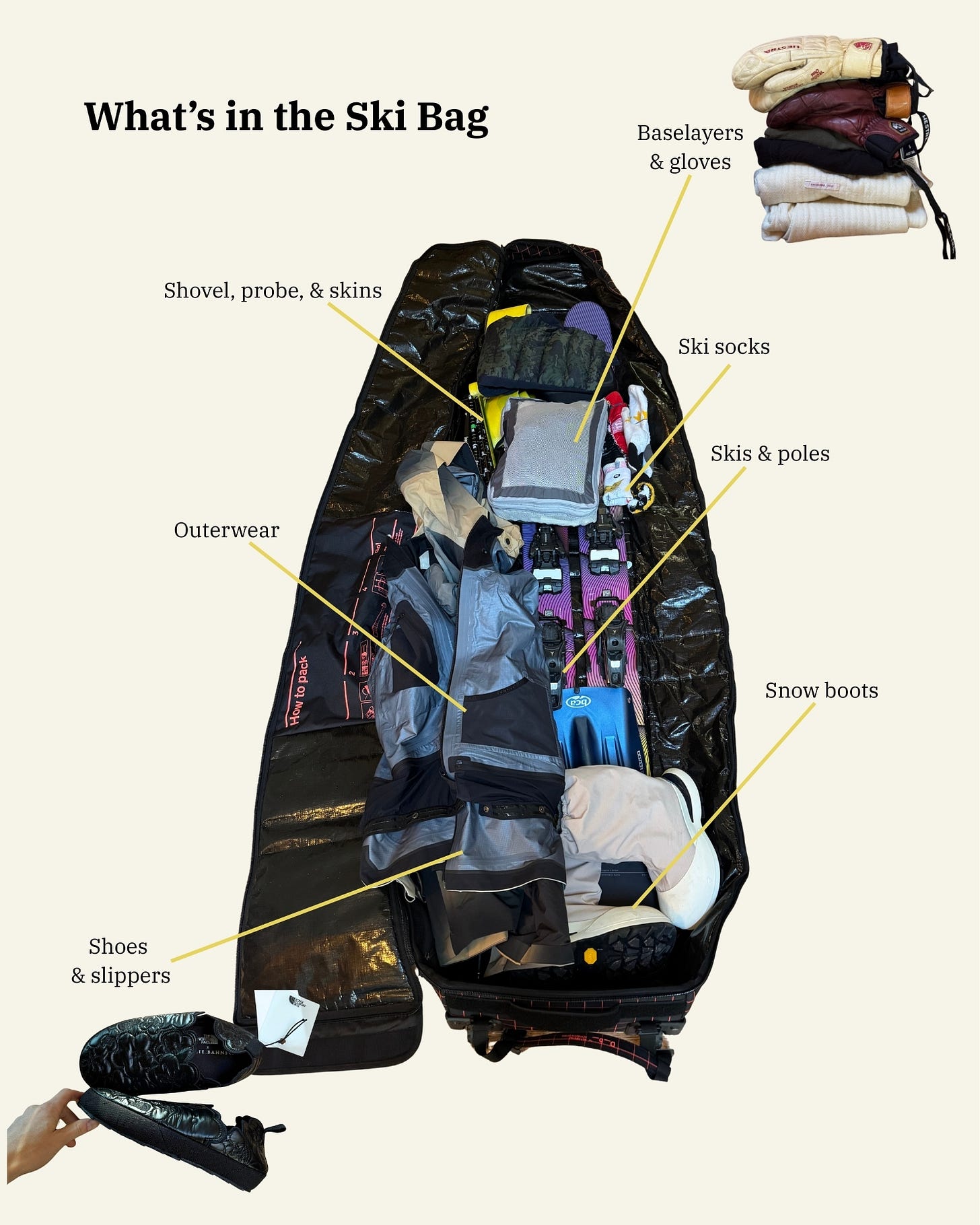 Where do ski boots go? How do you pack the ski bag? What ski layers am I wearing?