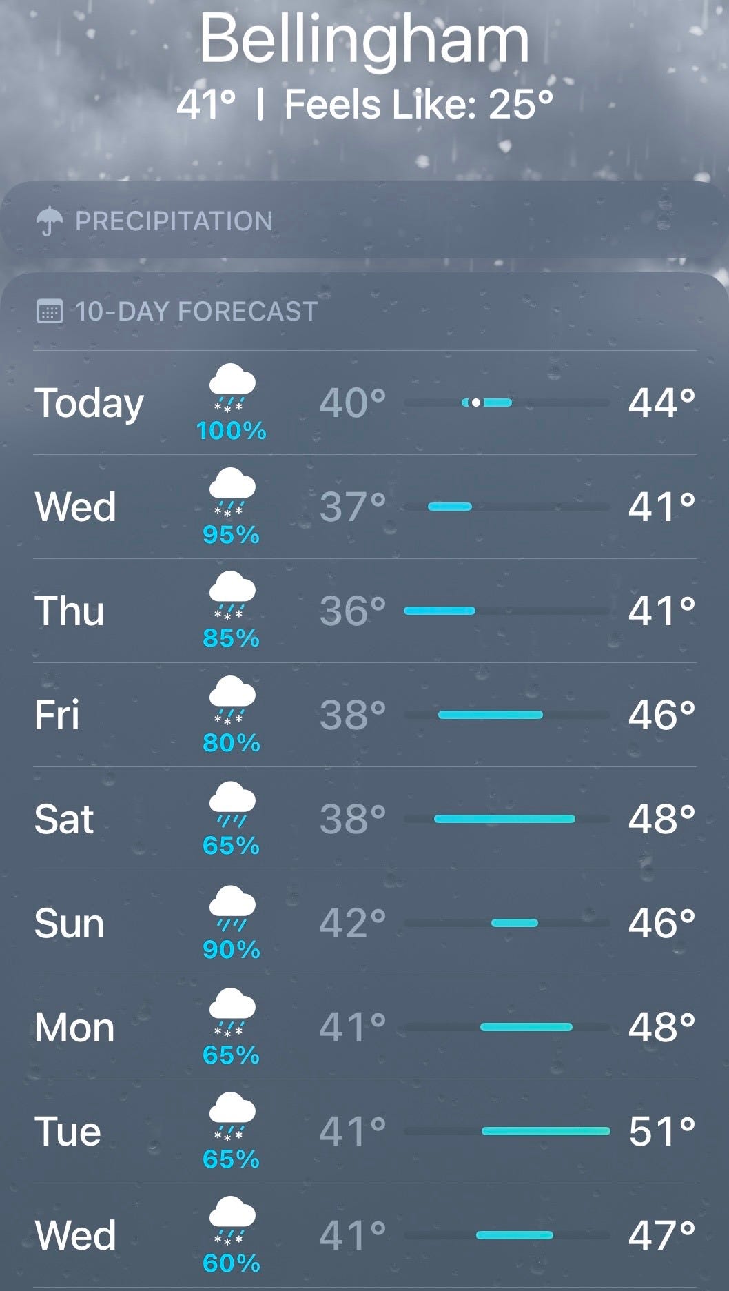 Besides, this is what a recent week of weather looked like: